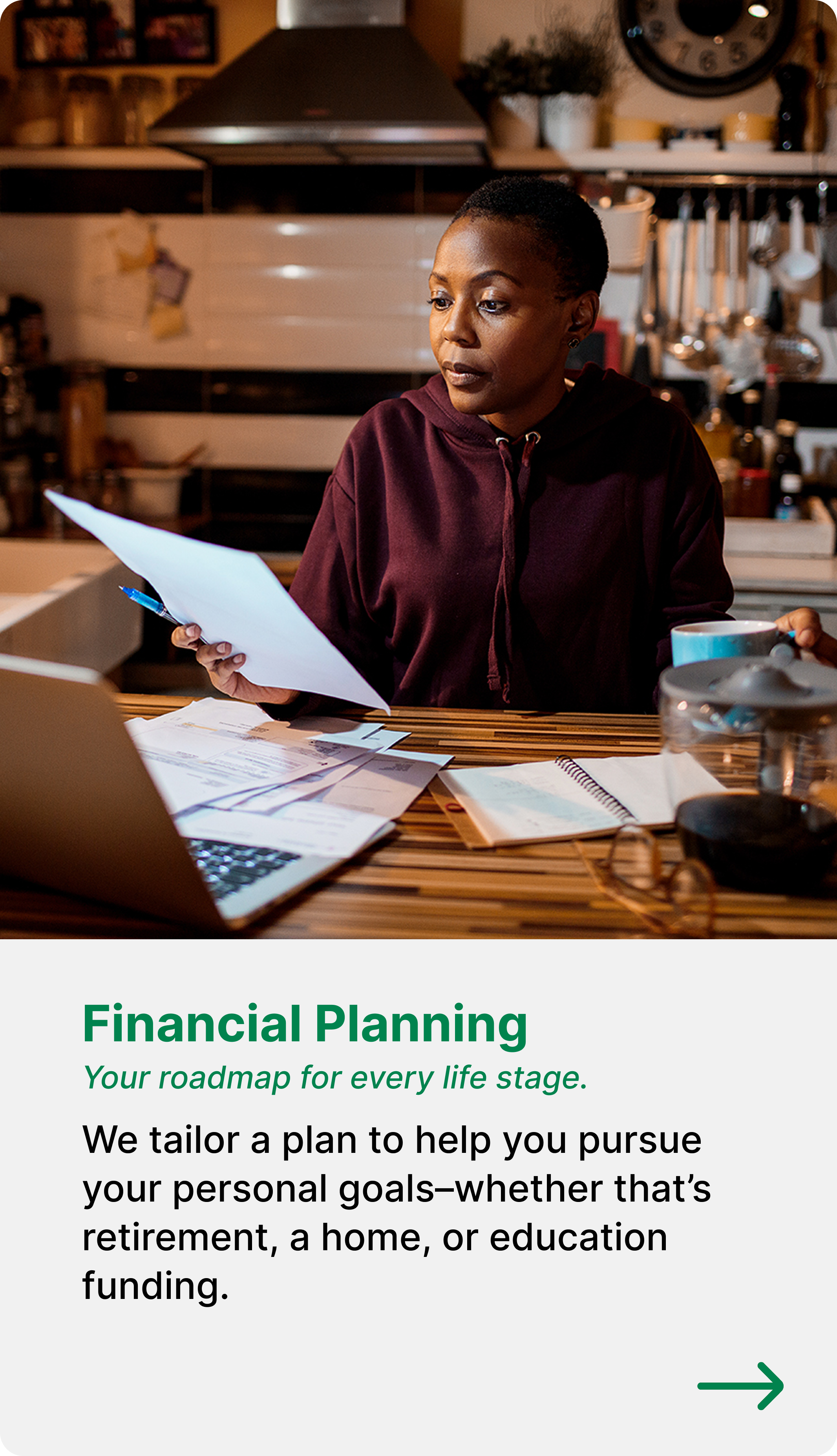 We can partner with you to make sure you understand all the options that are available. We will help you establish a plan of action for today's issues, while also working together on a retirement plan tailored to your personal goals.